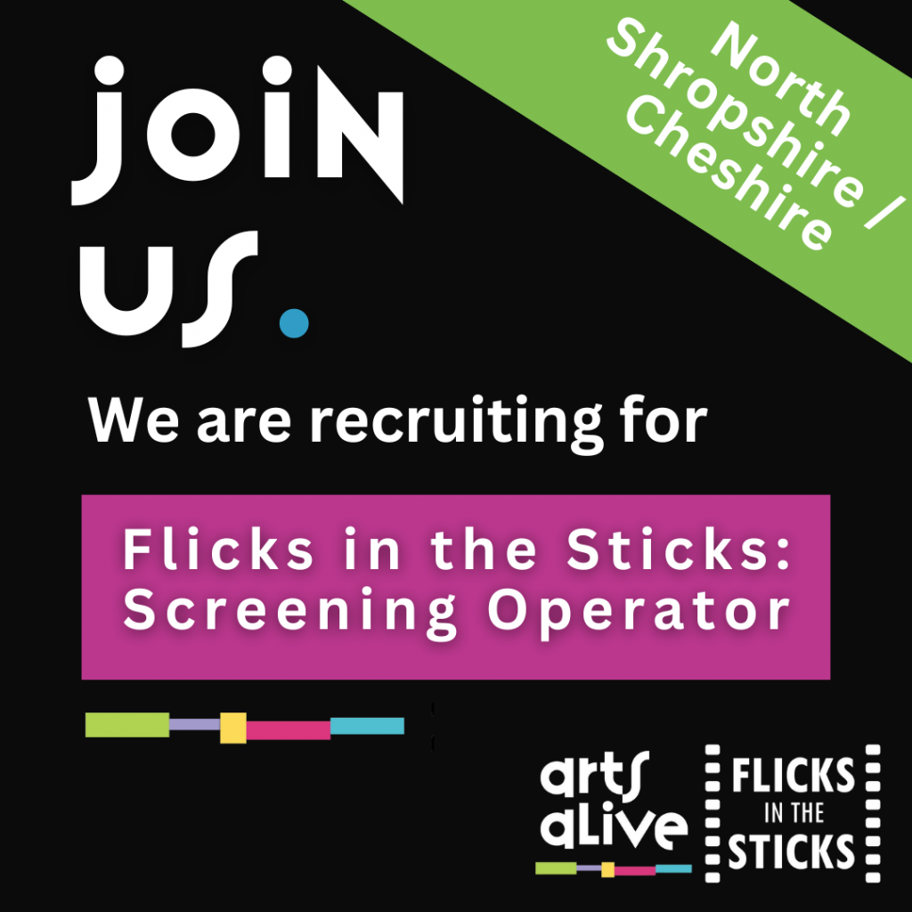 Are you technically minded and enjoy working independently and with a team? Arts Alive is looking for a Screening Operator to join our Flicks in the Sticks team, delivering cinema experiences across rural communities in North Shropshire and the surrounding areas.